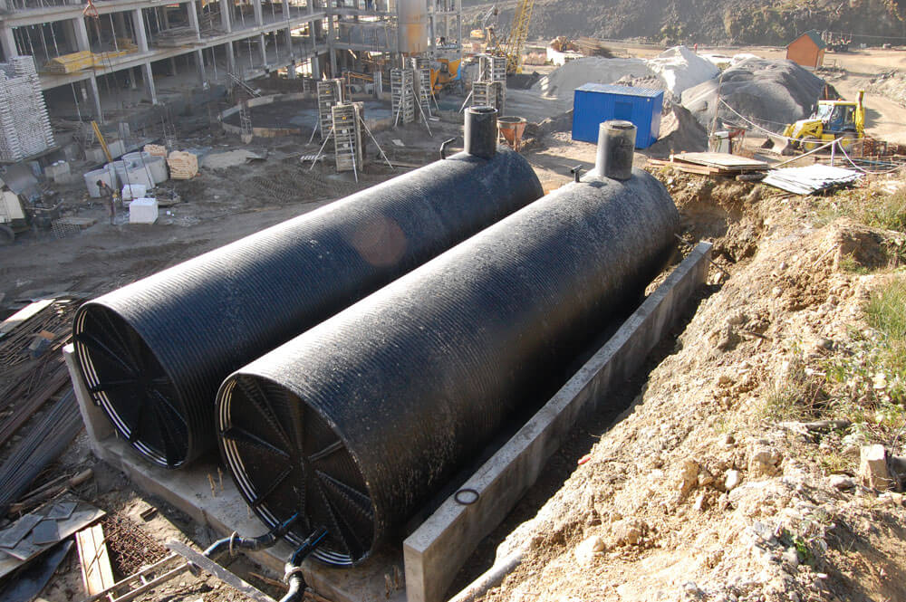 Подземный пожарный резервуар имеет ряд преимуществ: при минусовых температурах воду не нужно подогревать, удается сэкономить пространство на объекте. К минусам можно отнести невозможность поменять месторасположение резервуара. Монтаж подземного резервуара будет дорогостоящим. Потребуется закладка подземного фундамента, защита емкости от грунтовых вод.