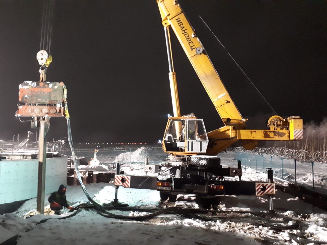 Тобольск. Продолжаются работы по укреплению котлованов под КНС. Демонтаж-монтаж шпунта ларсена GU27n