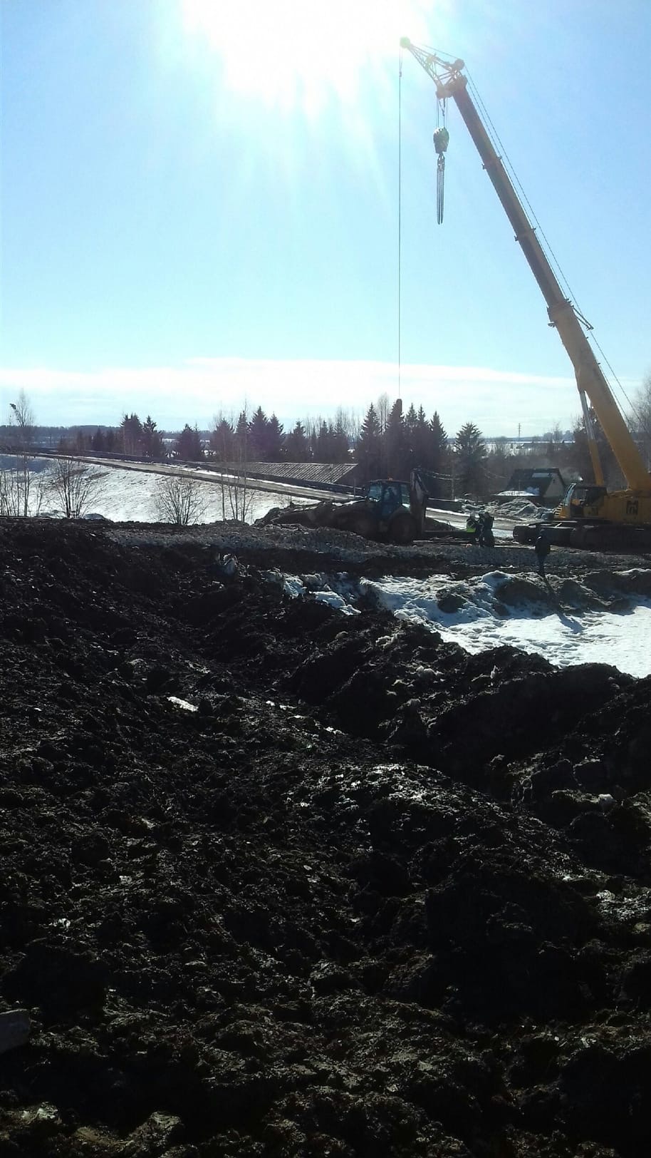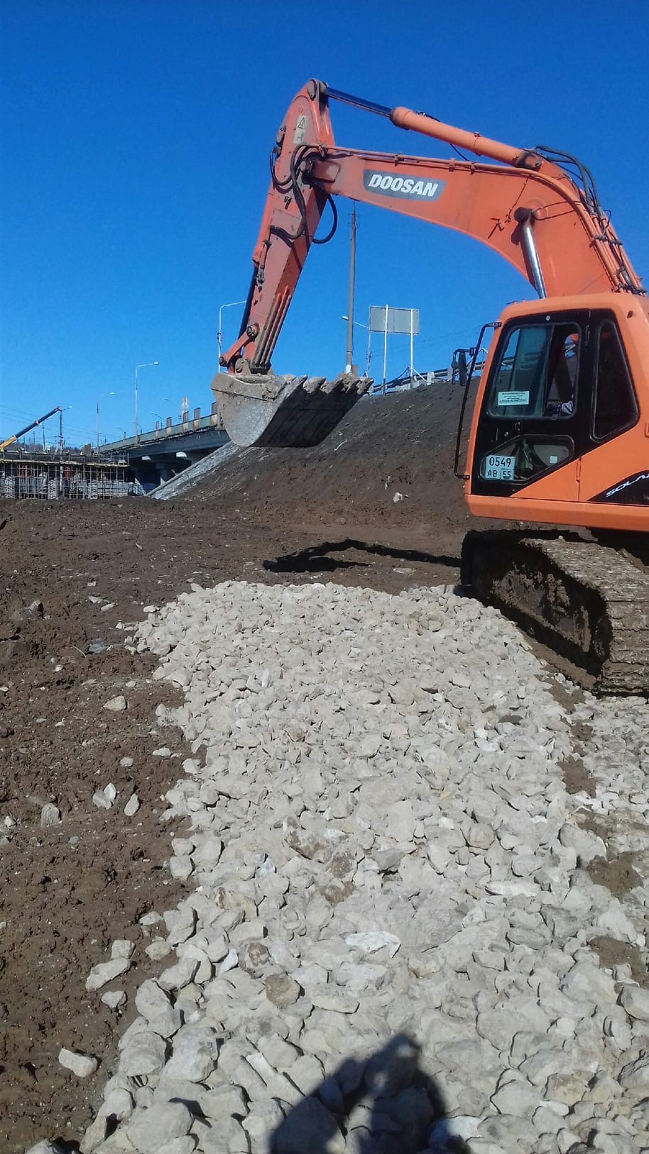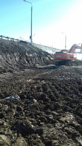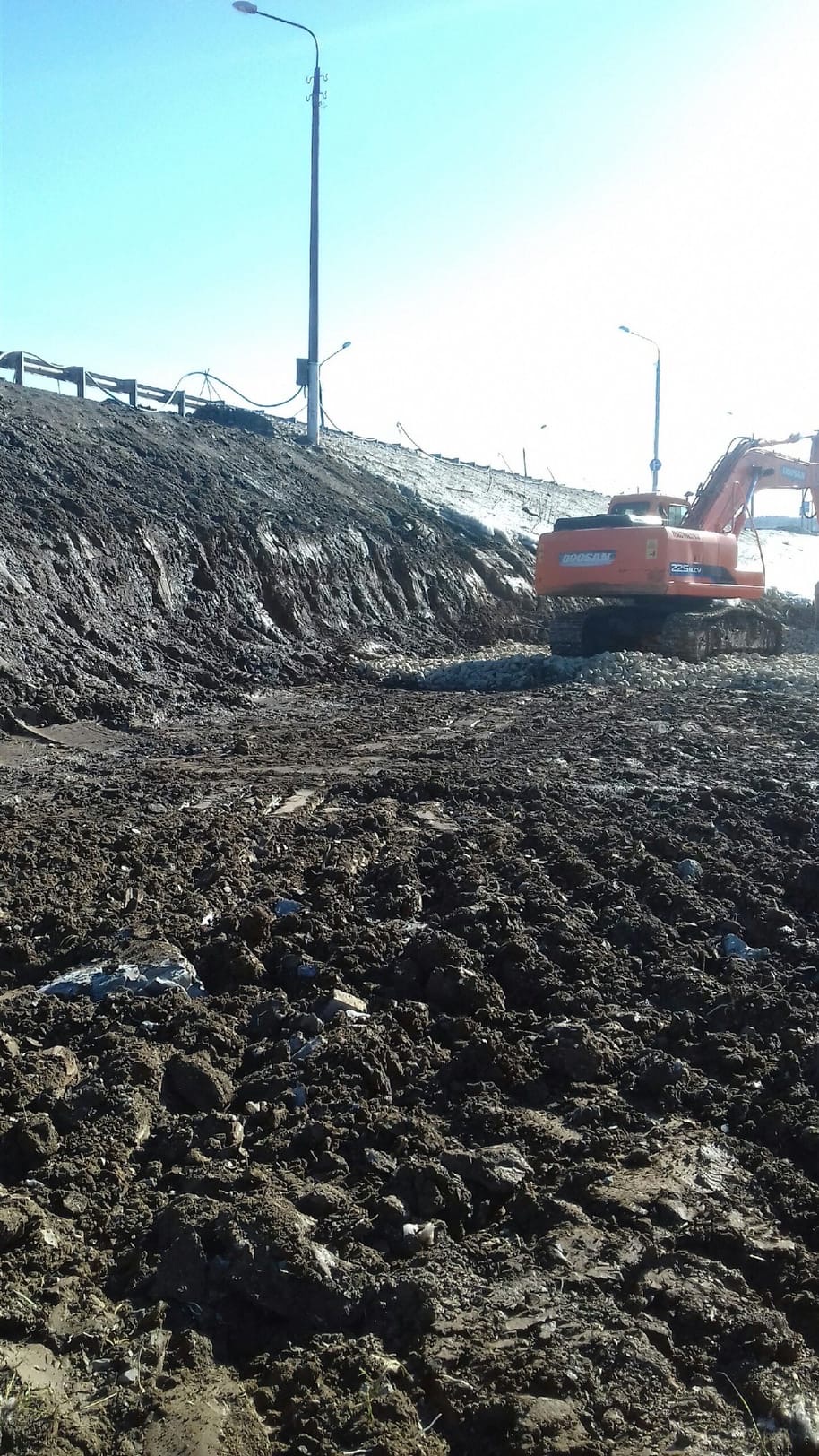 Первоуральск. Чусовской мост. Строительство дорожной развязки в Пальниках. Подготовка площадки для устройства шпунтовой подпорной стенки.
