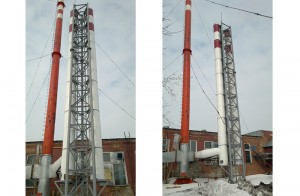 Фото изготовленных нашим заводом дымовых труб на растяжках в Первоуральске: